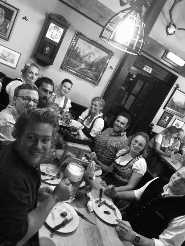 Wir unternehmen regelmäßig etwas gemeinsam, beispielsweise Weißwurstfrühstücke, Grillabende, Wiesn- und Starkbierfestbesuche.